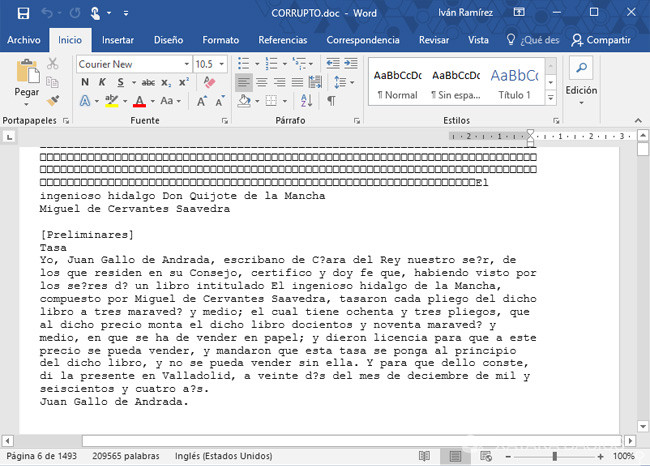 - El archivo no se puede abrir o muestra errores al abrirse.